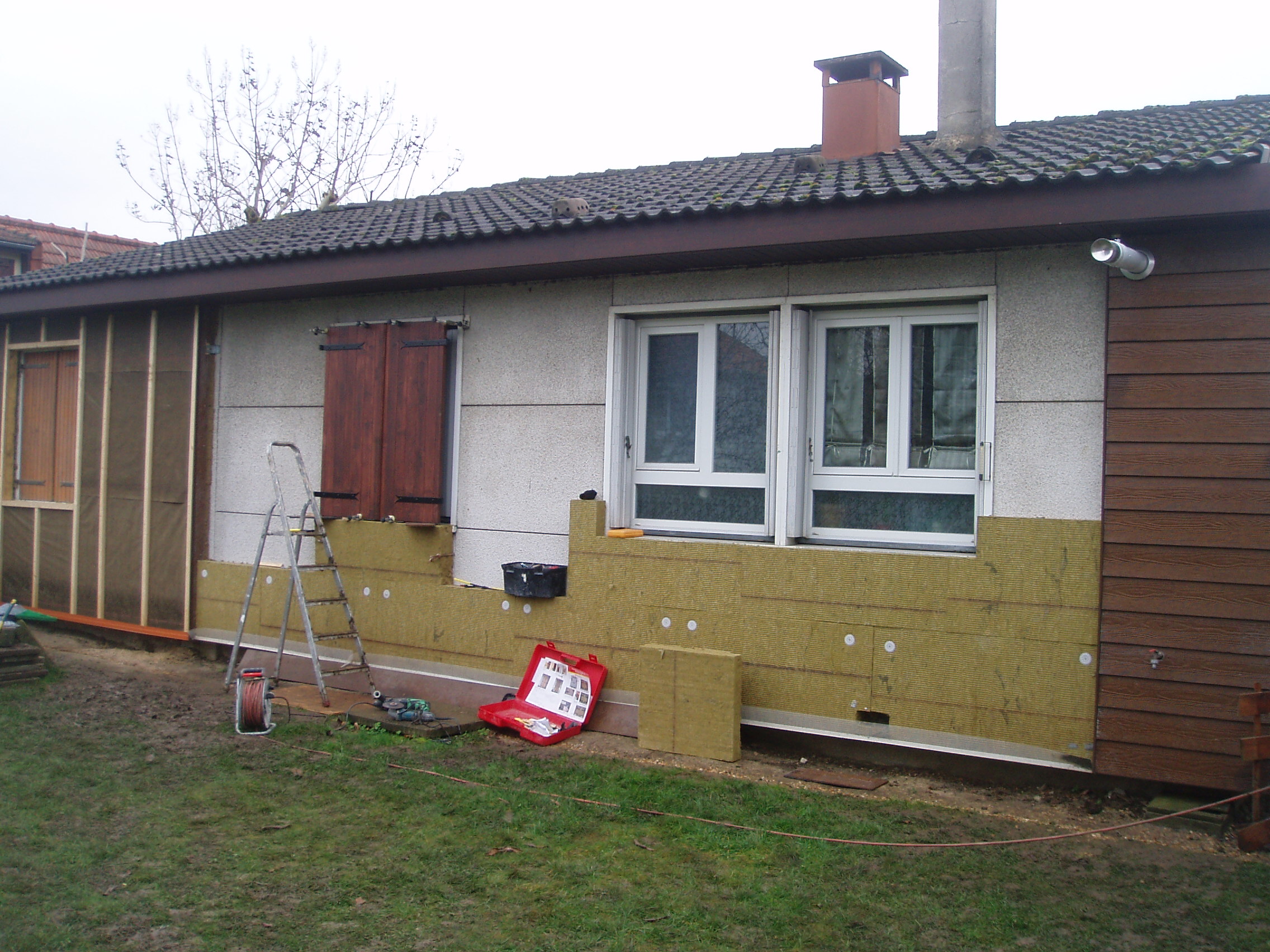 Un isolant thermique est fixé sur les murs de votre maison (sur le revêtement existant).